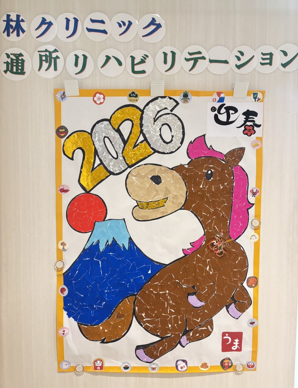 通所リハビリテーションで、ご利用者さまと一緒に干支の作品を制作しました。色紙を貼りながら会話も弾み、楽しい時間となりました。
