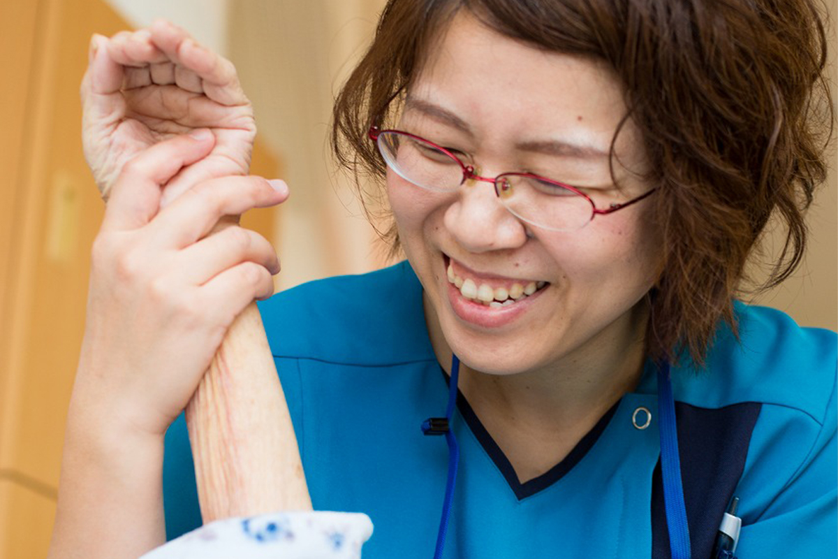 色々な障害や病気により低下した全身の筋力や、手足が硬くなったなどの症状に対して、筋力の維持・増強や手足が固まらないようにする運動、そして、日常生活で使用する起き上がり・座る・立つ・歩くなどの基本的な動作の練習なども重点を置き患者様をサポートさせて頂きます。